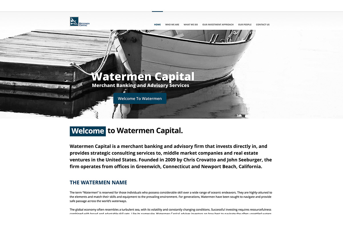 Website design for Watermen Capital a national merchant banking and advisory firm.